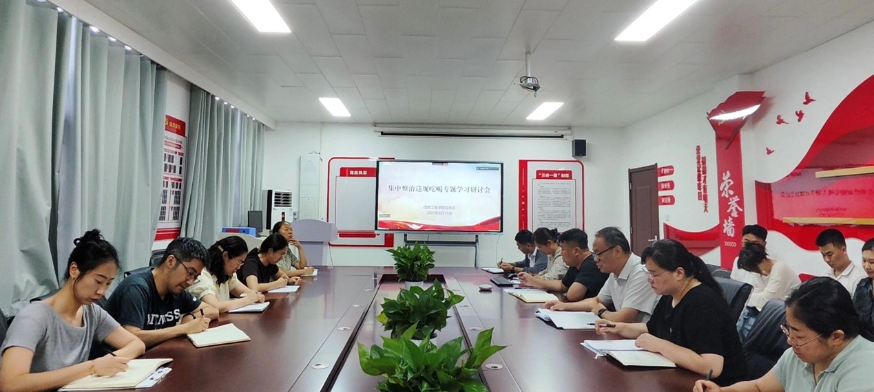 2025年6月19日,党委委员、副校长黄振中以普通党员身份参加信息工程学院党总支集中整治违规吃喝专题学习研讨会,并围绕集中整治违规吃喝问题与信息工程学院全体党员干部开展专题谈话。