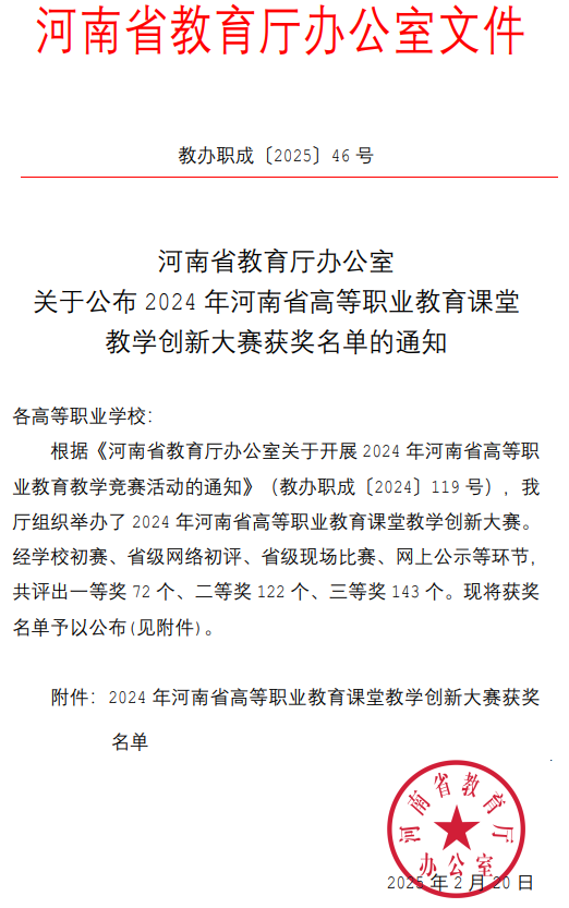 近日,2024年河南省高等职业教育课堂教学创新大赛圆满落幕。经过激烈角逐,我校信息工程学院郅忠强老师凭借其创新的教学设计和出色的课堂表现,荣获大赛一等奖。