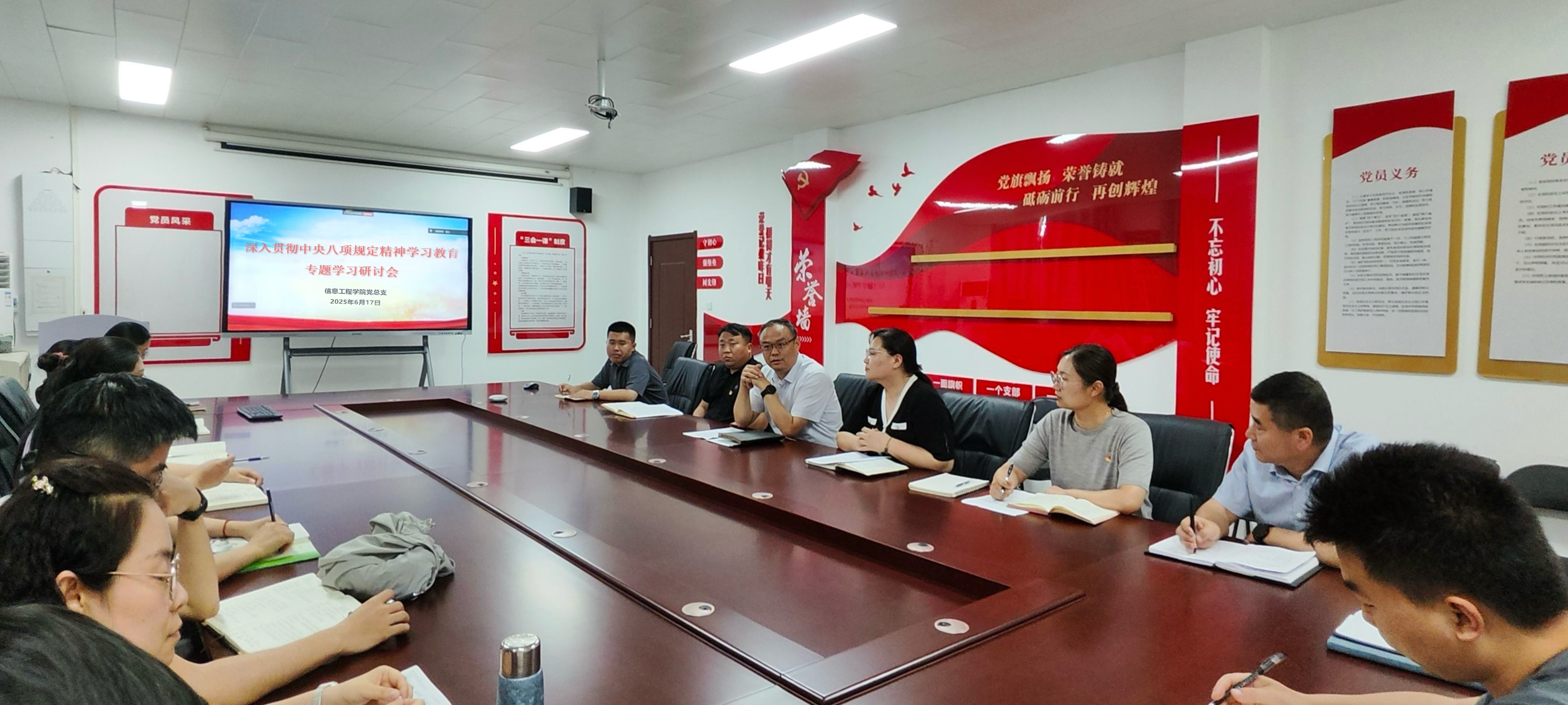 为进一步学习贯彻习近平总书记关于加强党的作风建设的重要论述和重要指示精神,学习贯彻中央八项规定及其实施细则,6月17日下午,校党委委员、副校长黄振中以党员身份参加信息工程学院深入贯彻中央八项规定精神学习教育专题学习研讨会,并与党员围绕学习主题交流心得,推动中央八项规定精神学习教育走深走实。