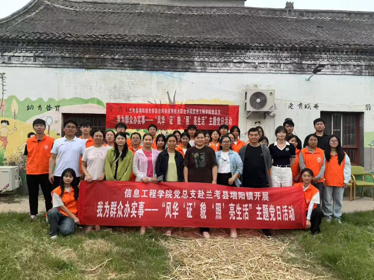 为深入贯彻落实习近平新时代中国特色社会主义思想,积极践行以人民为中心的发展思想,将 “我为群众办实事”实践活动走深走实,践行党员服务群众宗旨,2025年5月30日,信息工程学院党总支携手兰考县堌阳镇党委,开展“我为群众办实事——风华‘证’貌 ‘照’亮生活”主题党日活动。