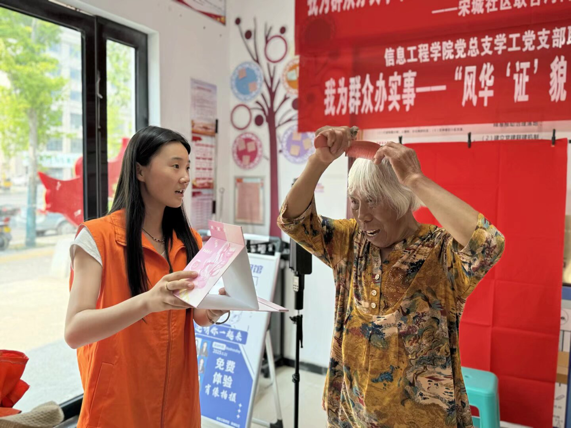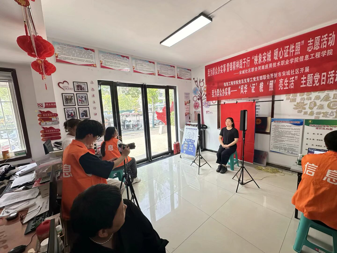 2025年5月21日,在开封市宋城社区的大厅内,一场社区暖心服务行动正在进行。信息工程学院党总支学工党支部联合开封市宋城社区开展“风华‘证’貌,‘照’亮生活”主题党日活动,为社区居民提供免费证件照拍摄服务,用镜头定格最美瞬间,用行动传递温暖关怀。